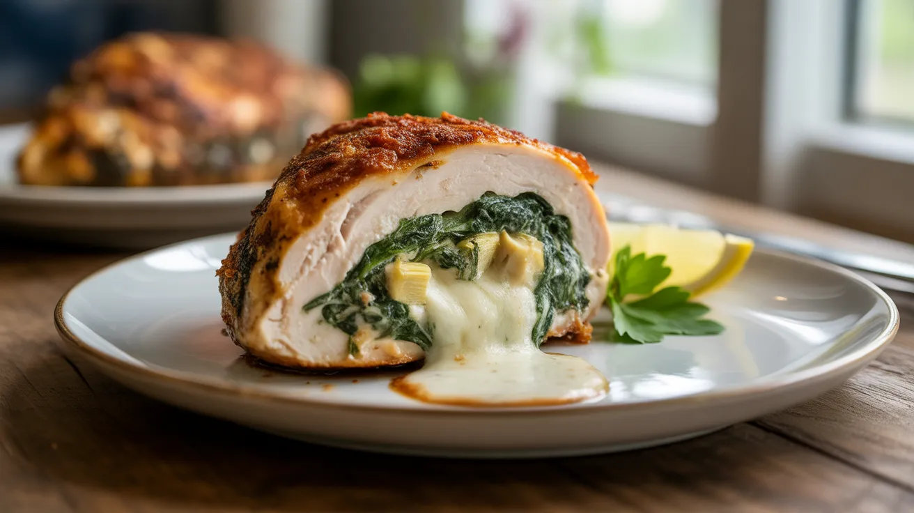 1. Dry everything — twice. Dry chicken breasts, dry spinach, dry artichoke hearts. Extra moisture is the enemy of good browning and tight filling. A quick pat-down takes 30 seconds and makes a big difference in the final result.