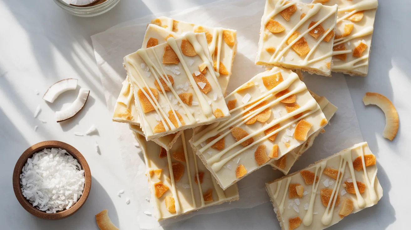 Dark Chocolate Coconut Bark: Swap white chocolate for dark chocolate chips and reduce coconut oil to 1 tablespoon. The bitter chocolate balances the sweet coconut beautifully.