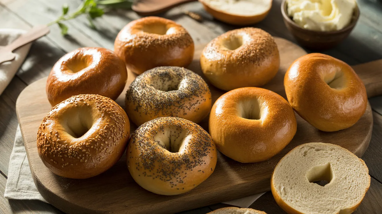Everything Bagels: Mix 2 tablespoons each of sesame seeds, poppy seeds, dried garlic flakes, dried onion flakes, and 1 tablespoon coarse salt. Sprinkle generously after boiling. These work perfectly for sandwiches and cream cheese spreads.